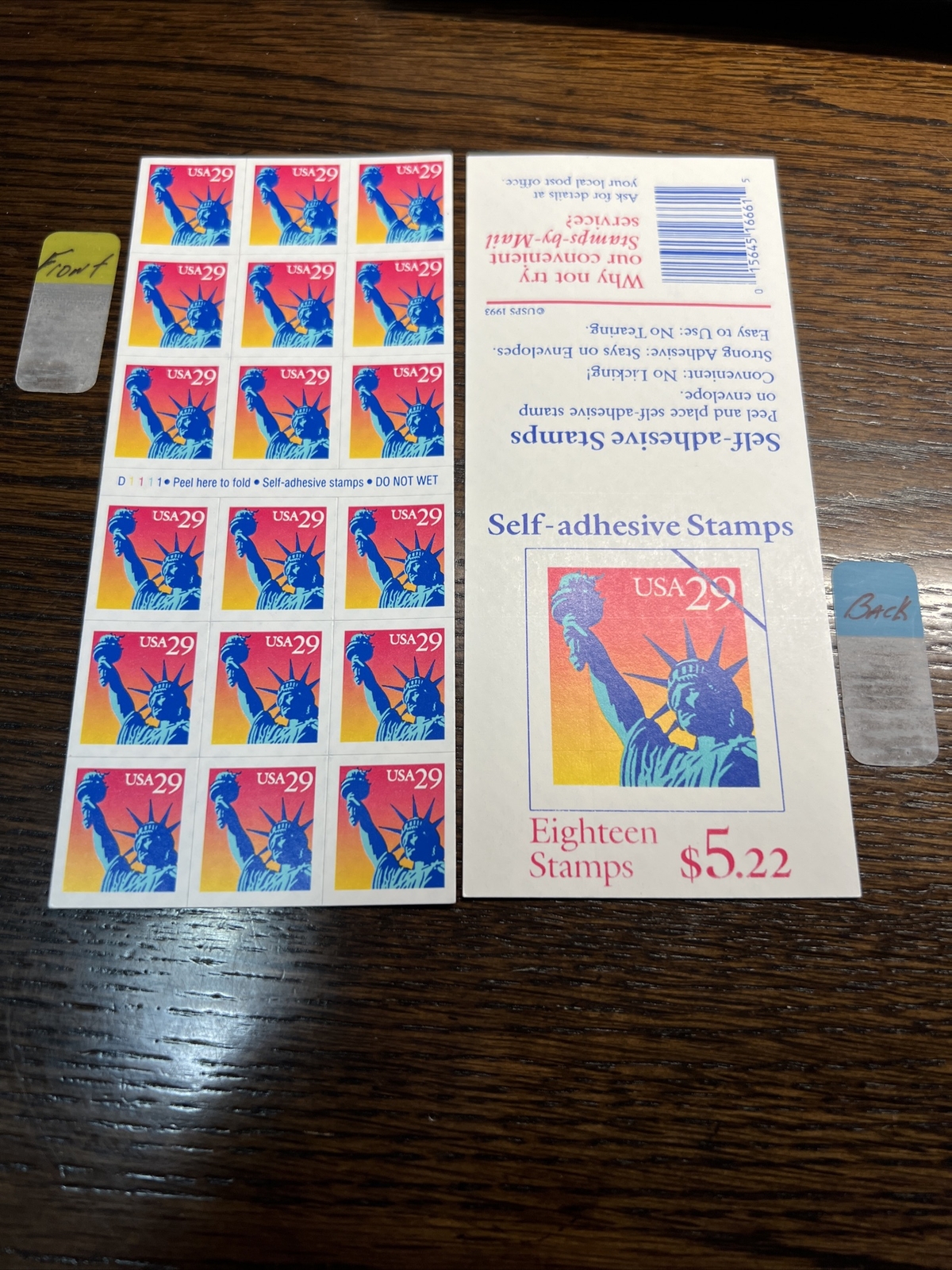 SCOTT#2599a BOOKLET OF 18 STATUE OF LIBERTY STAMPS 29 CENT FACE MNH.