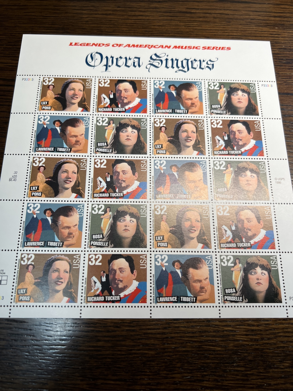 SCOTT # 3154-57-LEGENDS OF AMERICAN MUSIC-OPERA SINGERS-SHEET OF (20) MNH 1997.