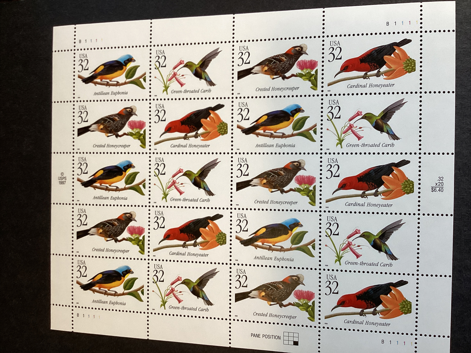 Scott# 3222-3225 TROPICAL BIRDS Sheet of 20/32¢ Stamps MNH 1998-US.
