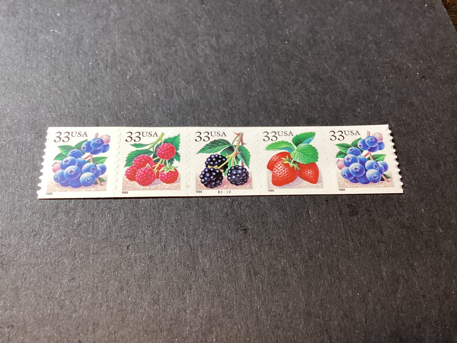 Scott# 3302-05 33¢ Berries PNC5 Plate #B2222-MNH-1999-US. Shipped with USPS Ground Advantage.