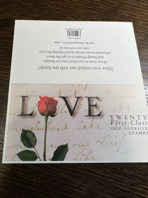SCOTT # 3496-LOVE-ROSE-BOOKLET OF (20) FIRST CLASS STAMPS-MNH-2001.
