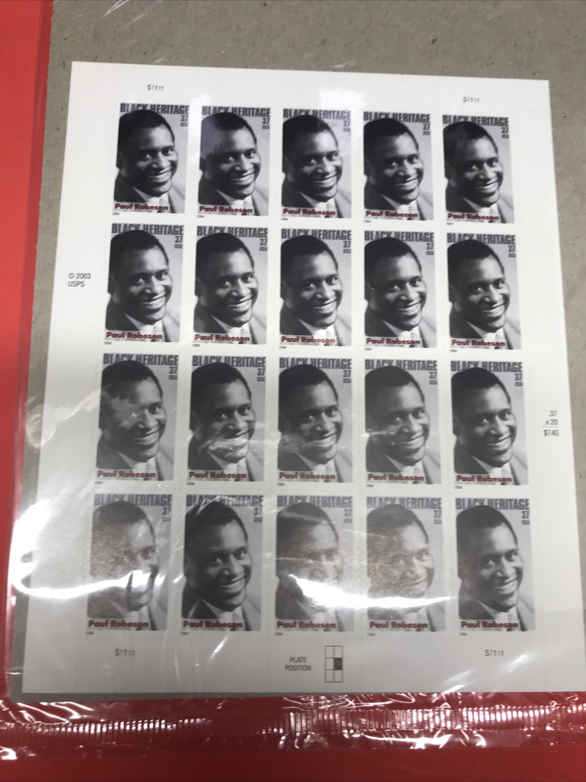 SCOTT#3834 PANE OF 20 PAUL ROBESON STAMPS 37 CENT FACE MNH-2004-NIP.