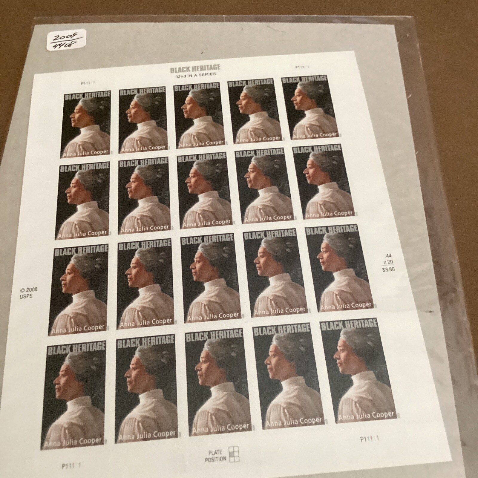 SCOTT#4408-BLACK HERITAGE SERIES-ANNA JULIA COOPER-SHEET OF (20)MNH-2009-NIP-US.