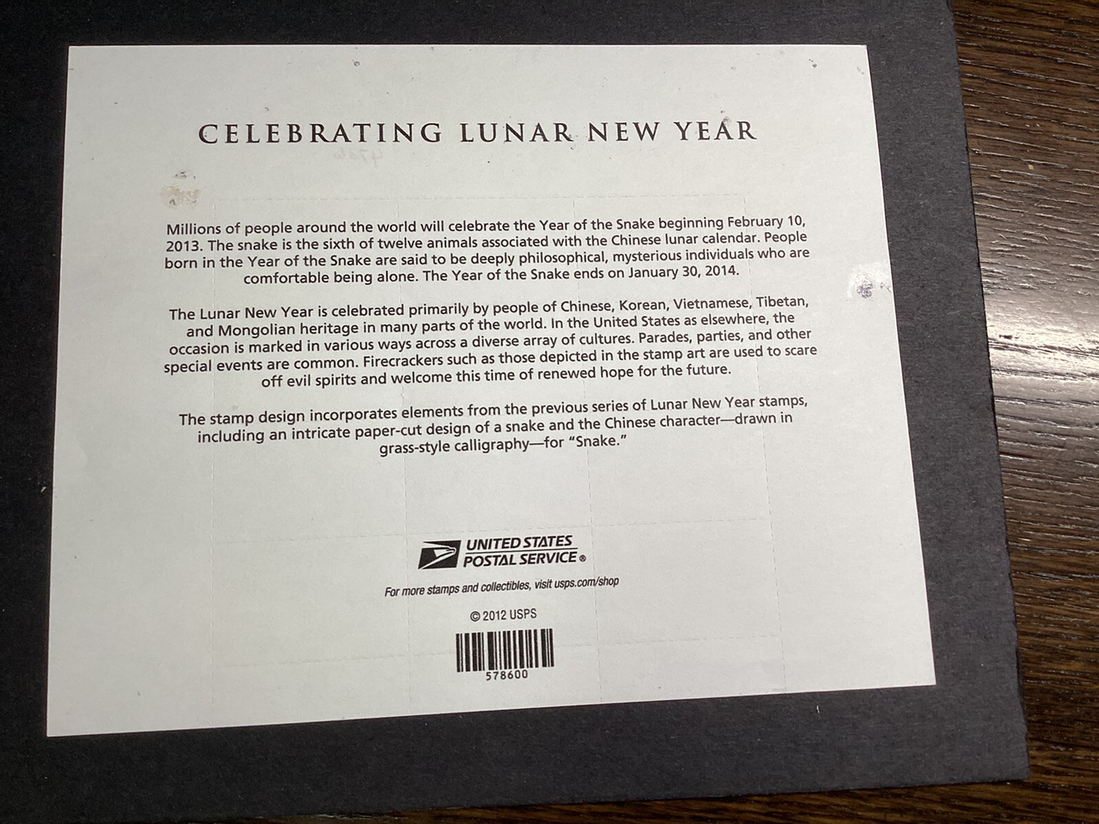 SCOTT# 4726 SHEET OF 12 LUNAR NEW YEAR FOREVER STAMPS MNH-2013-US