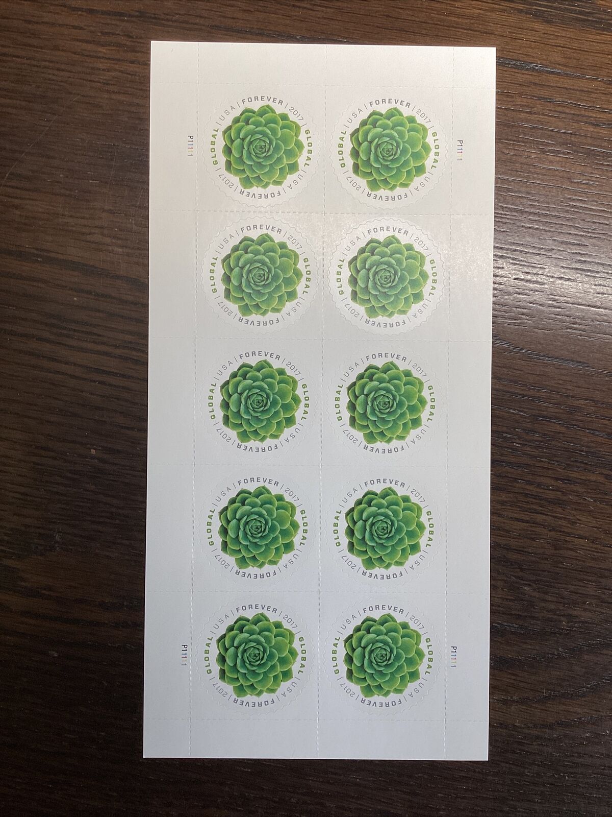 SCOTT#5198 PANE OF 10 GLOBAL GREEN SUCCELENT STAMPS FOREVER MNH-2017-US.