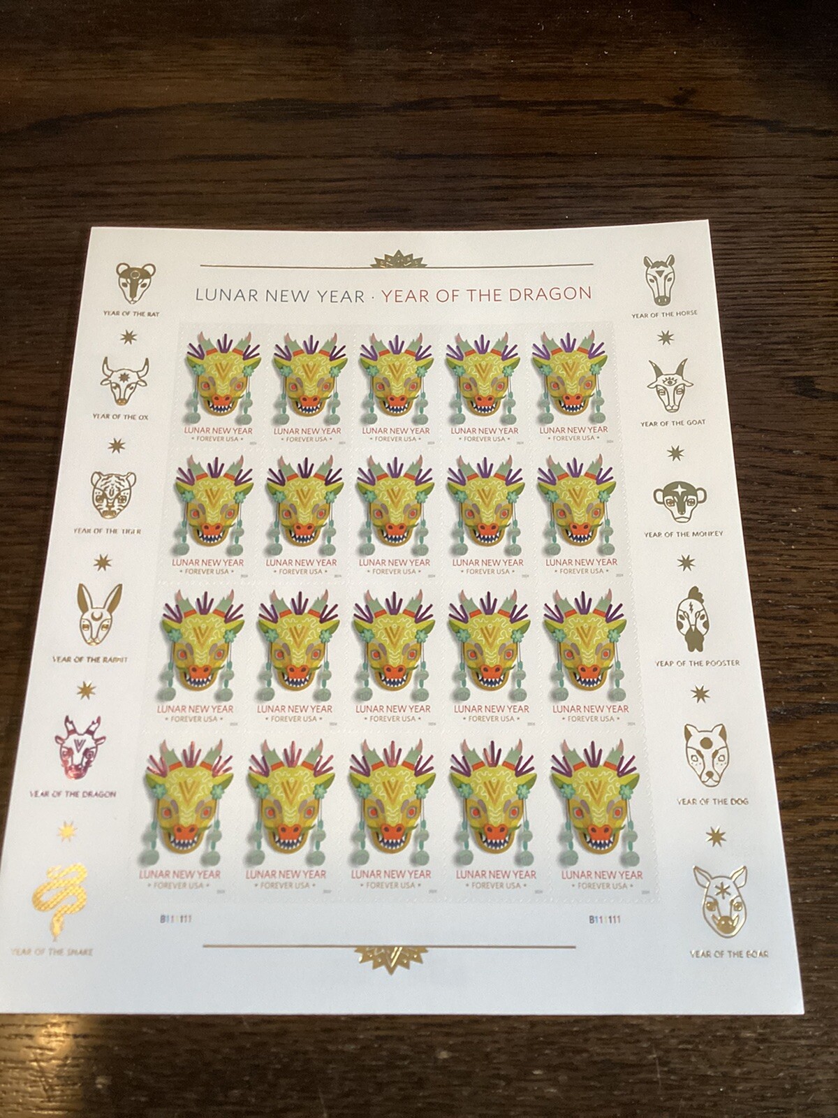 SCOTT# 5829- SHEET OF 20 LUNAR NEW YEAR OF THE DRAGON STAMPS-MNH-2024-US.