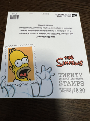 US SCOTT 4399 - 4403b PANE OF 20 SIMPSONS STAMPS 44 CENTS FACE MNH.