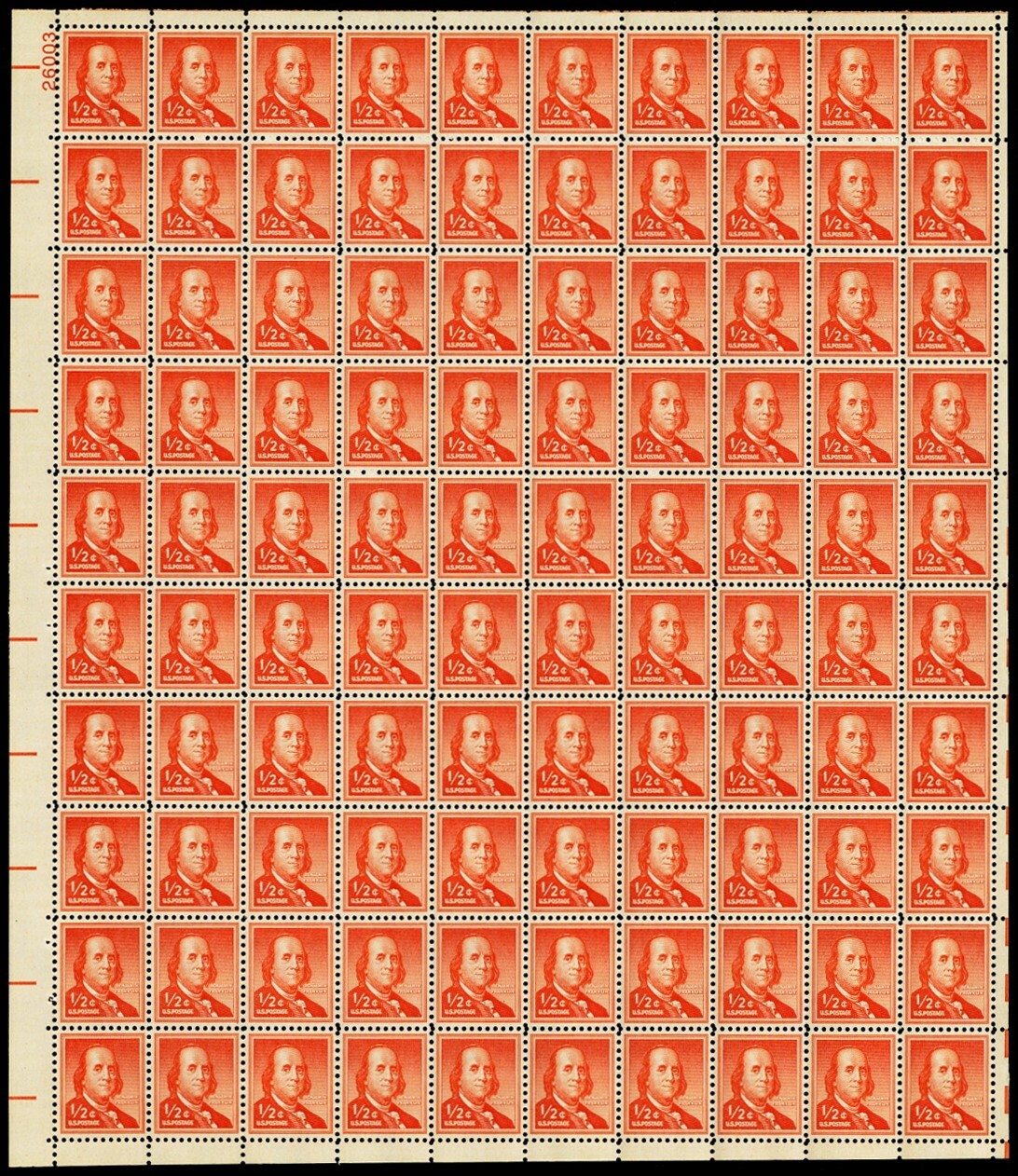 1030, Mint Sheet of 100 1/2 Cent Ben Franklin Stamps * Stuart Katz