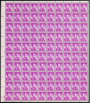 1036, Mint NH 4¢ Lincoln Full Sheet of 100 Stamps - Stuart Katz
