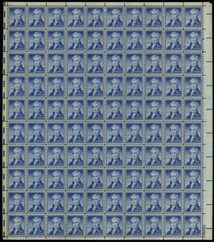 1038, Mint NH Complete Sheet of 100 5¢ James Monroe Stamps - Stuart Katz