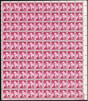 1040, MNH 7¢ Wilson Complete Sheet of 100 Stamps * Stuart Katz