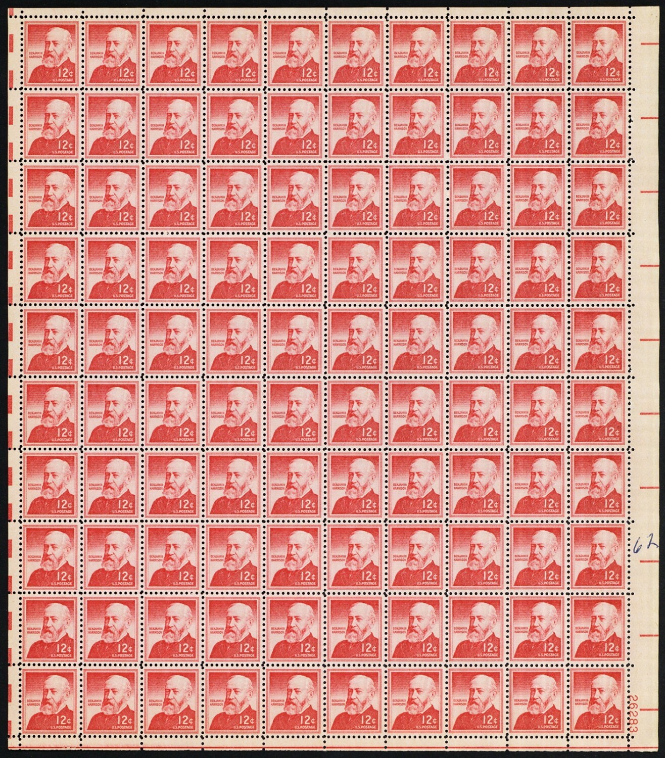 1045, Mint NH Benjamin Harrison Complete Sheet of Stamps CV $77.50 Stuart Katz