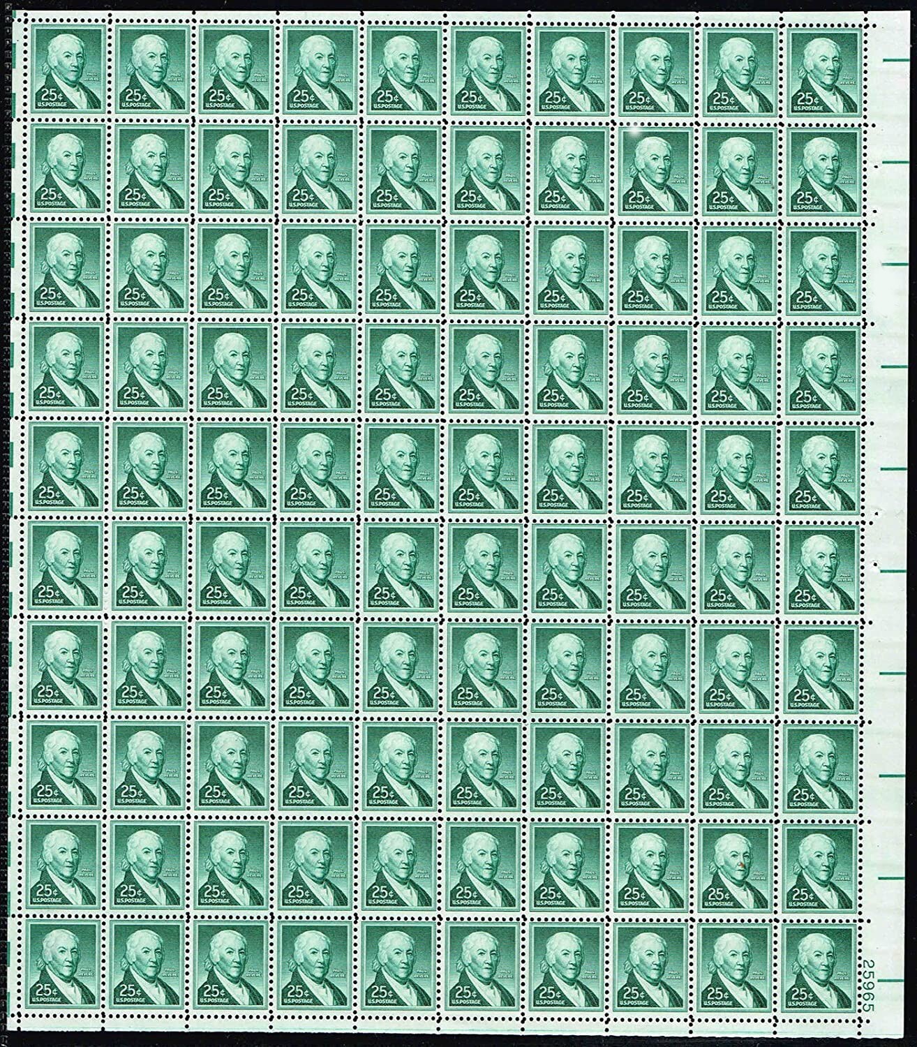 1048, Mint 25¢ Sheet of 100 Paul Revere Stamps Cat $165.00 - Stuart Katz