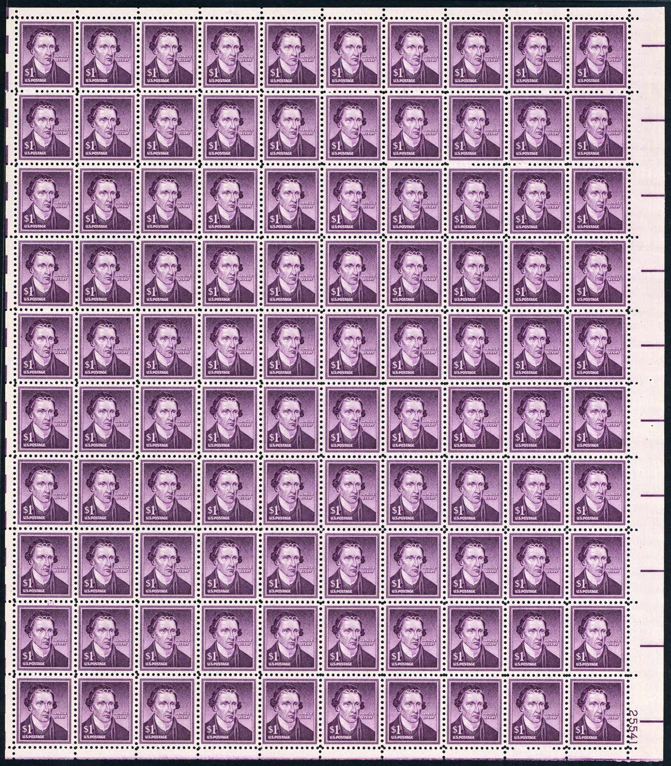 1052a, Mint VF NH $1 Complete Sheet of 100 Stamps (Dry printing) * Stuart Katz