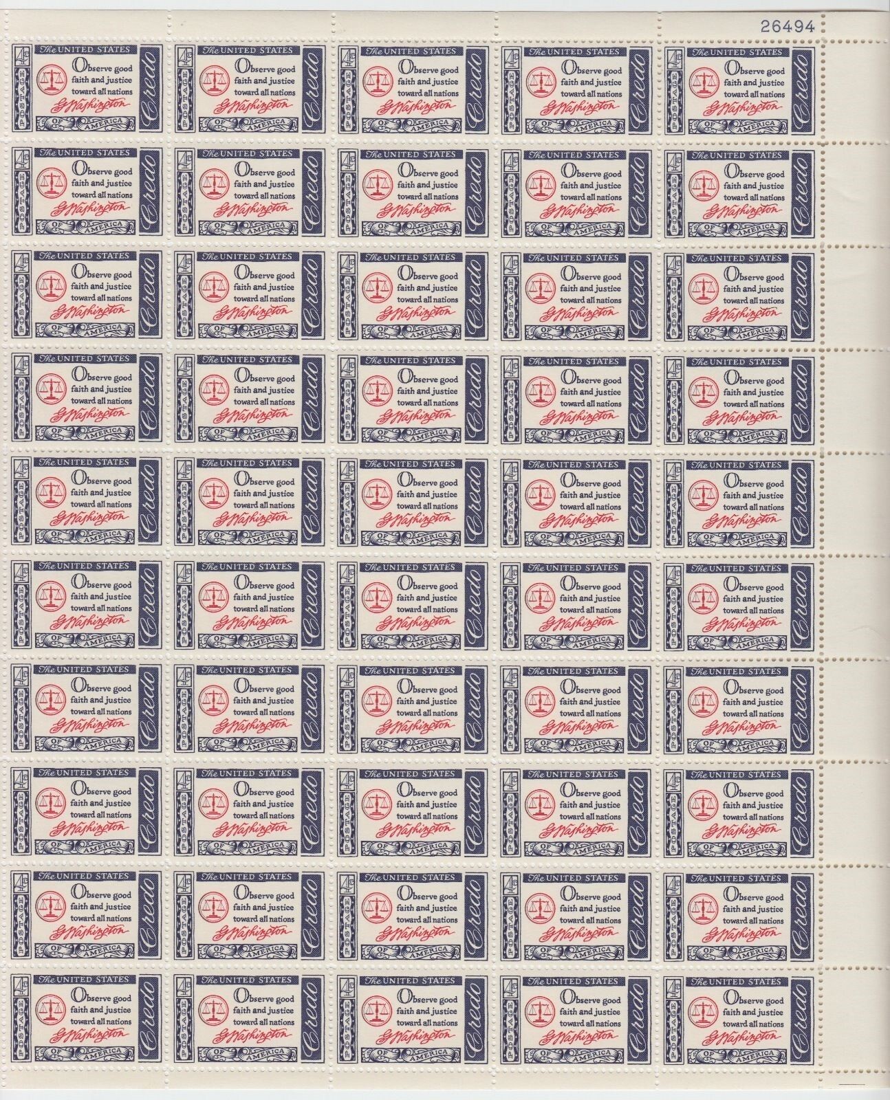 1139, Mint NH 4¢ Washington Sheet of 50 Stamps - Stuart Katz