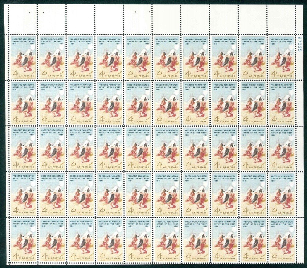 1187, MNH 4¢ Frederick Remington - Complete Sheet of 50 Stamps - Stuart Katz