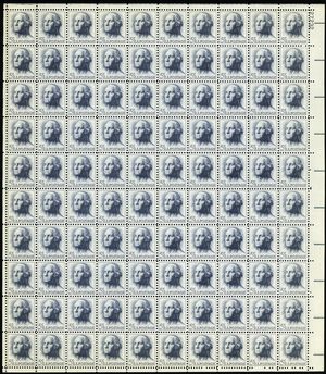 1213, Mint NH Complete Sheet of 100 5¢ Washington Stamps - Stuart Katz