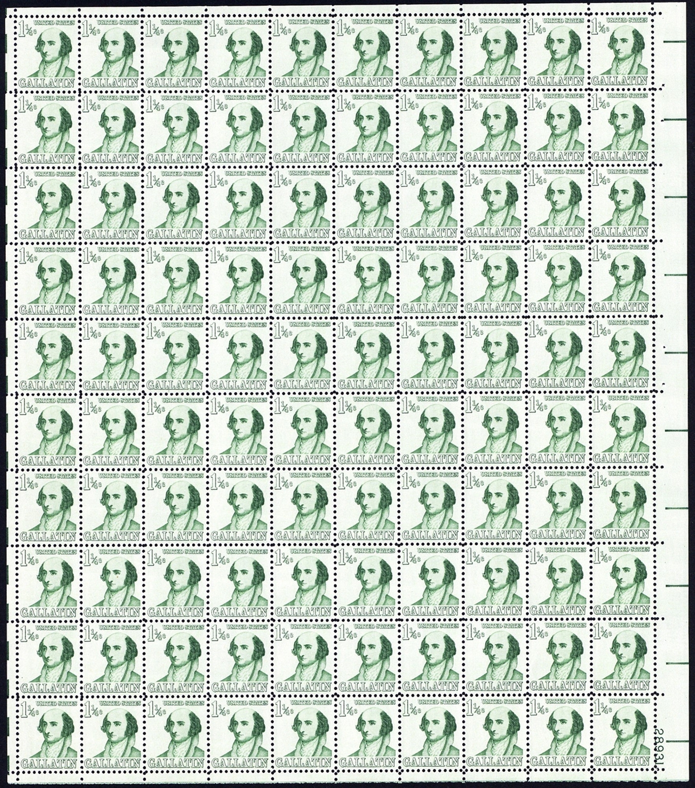1279, MNH 1-1/4¢ Albert Gallatin Sheet of 100 Stamps * Stuart Katz