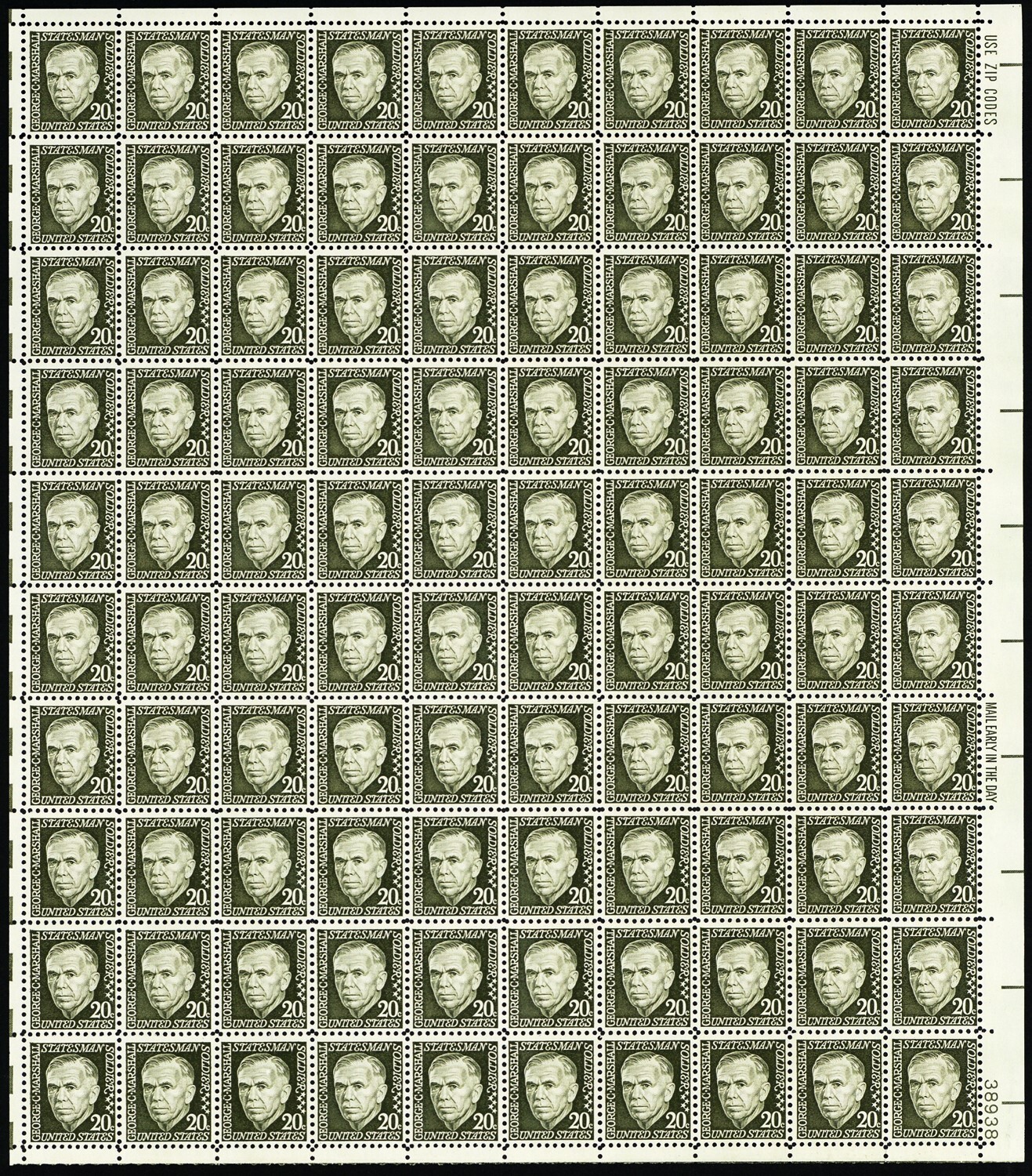 1289b, Mint NH 20¢ Dull Gum Sheet of 100 - Stuart Katz