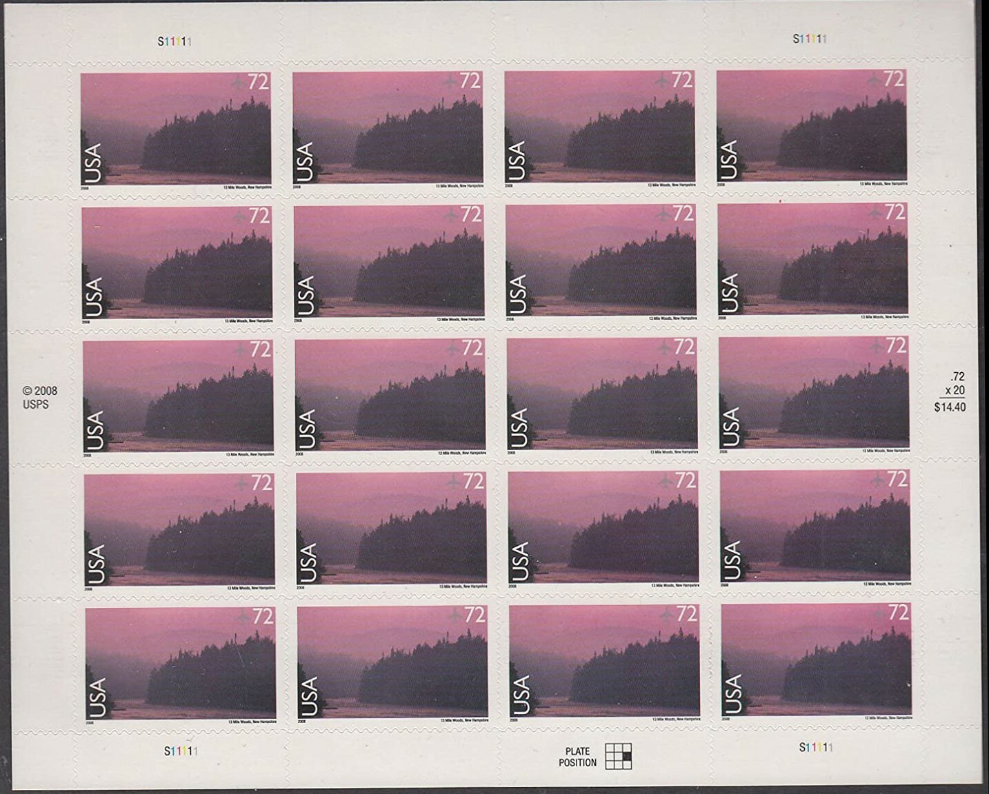13 Mile Woods Sheet of Twenty 72 Cent Airmail Postage Stamps Scott C144