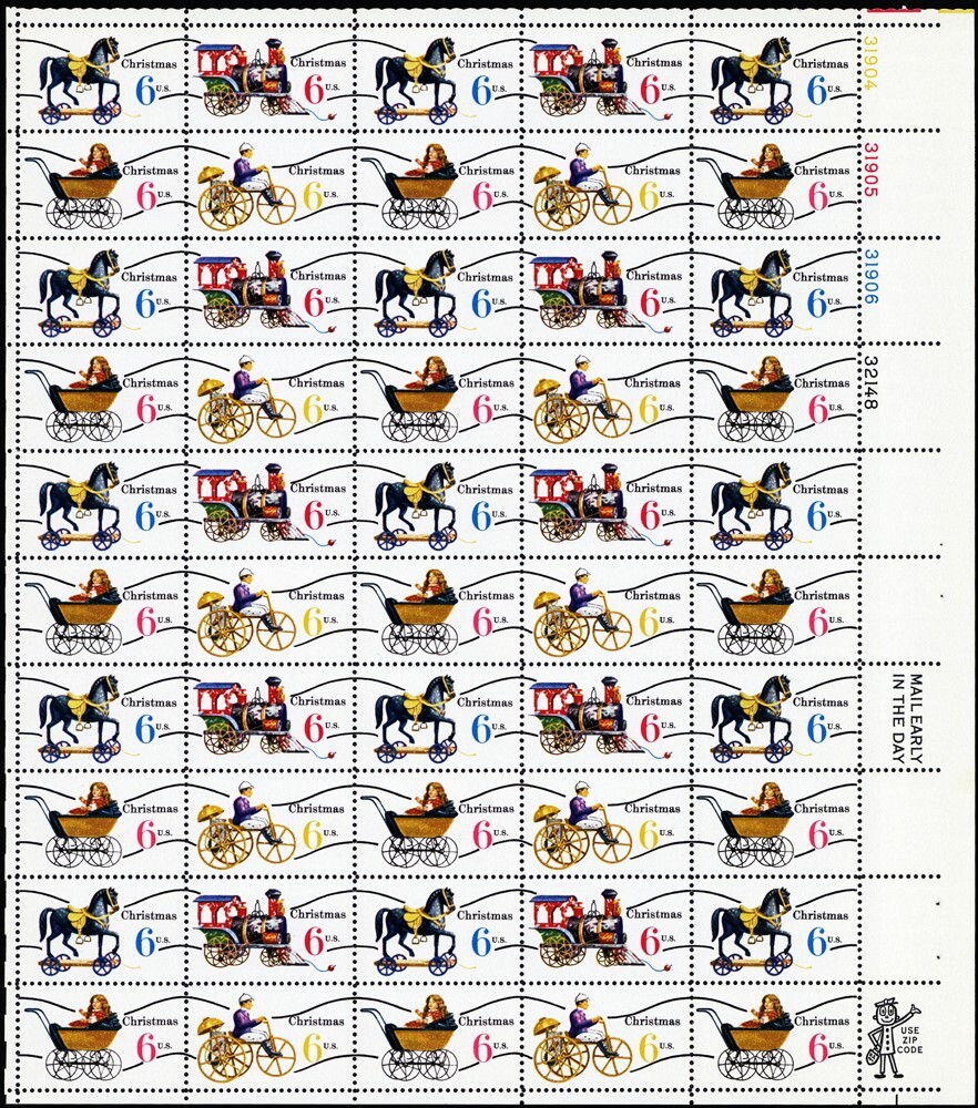 1418a, 6¢ Christmas Toys Sheet of 50 Pre-cancelled Stamps - Stuart Katz