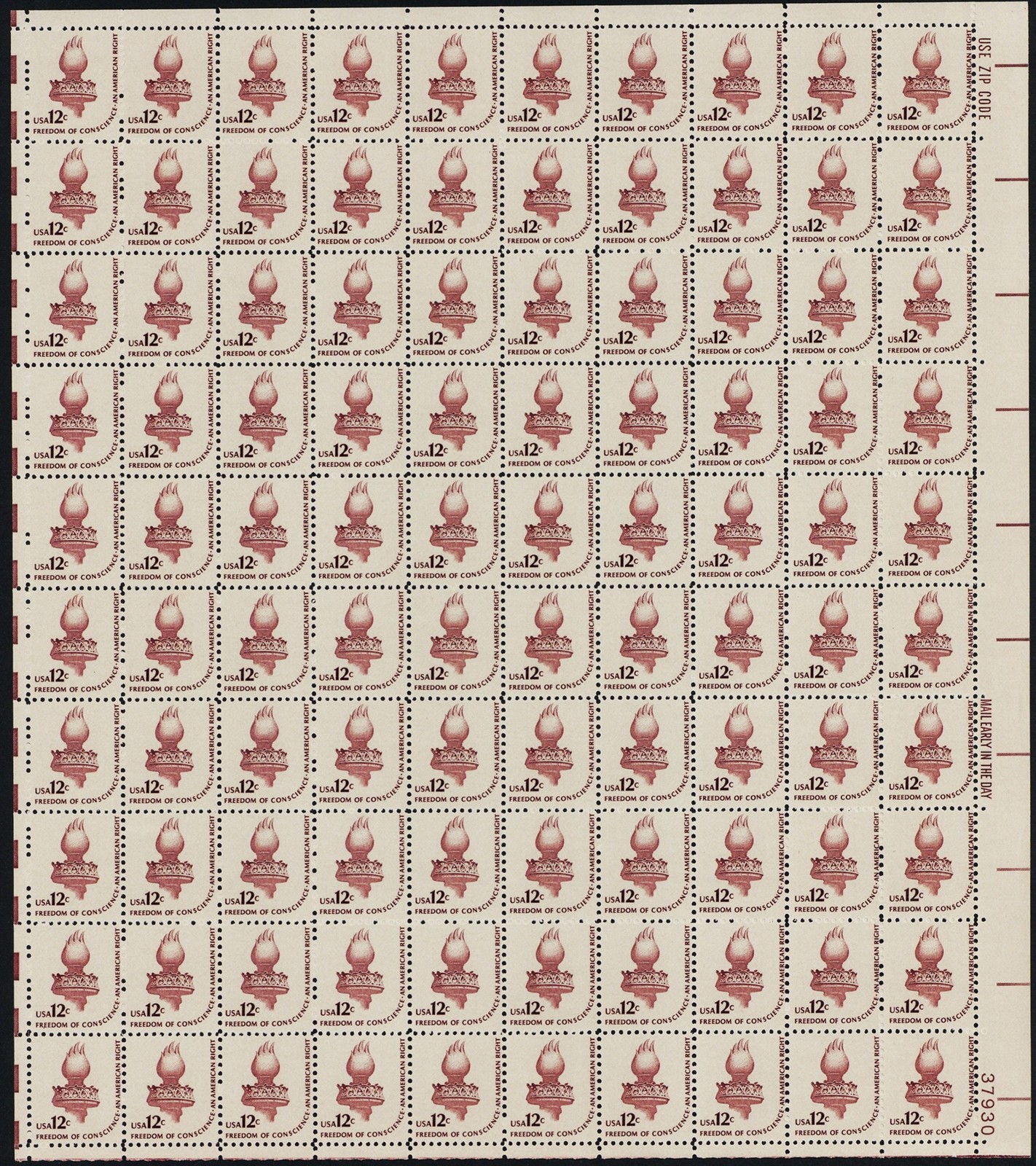 1594, Mint NH 12¢ Torch Sheet of 100 Stamps - Stuart Katz