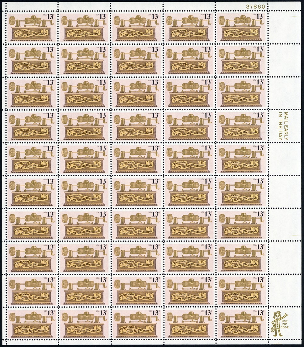 1705, Mint NH 13¢ Sheet of 50 Stamps Recording of Sound * Stuart Katz