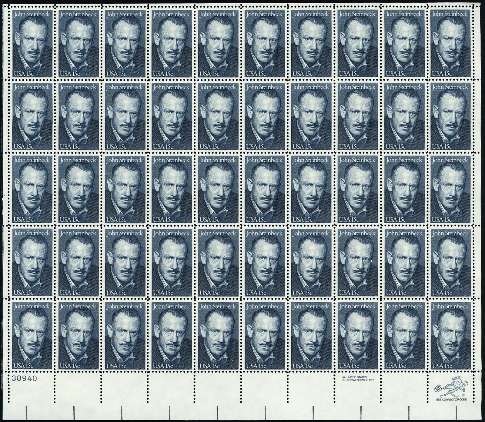 1773, MNH 15¢ John Steinbeck - Complete Sheet of 50 Stamps - Stuart Katz