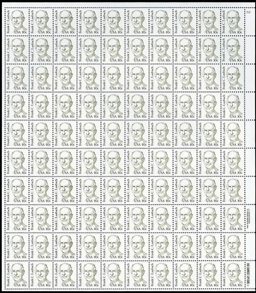 1864a Frank C. Laubach Complete Sheet of 30¢ Stamps CV $325.00 - Stuart Katz