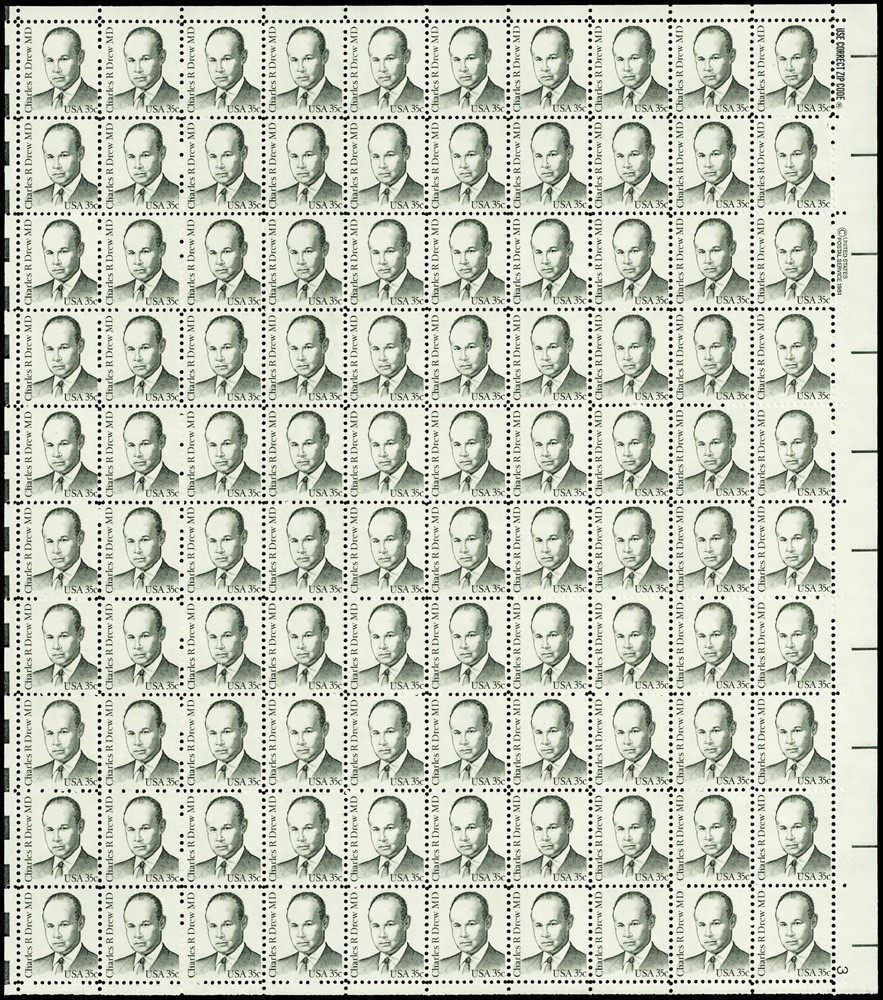 1865, MNH 35¢ Charles Drew MD - Complete Sheet of 100 Stamps - Stuart Katz