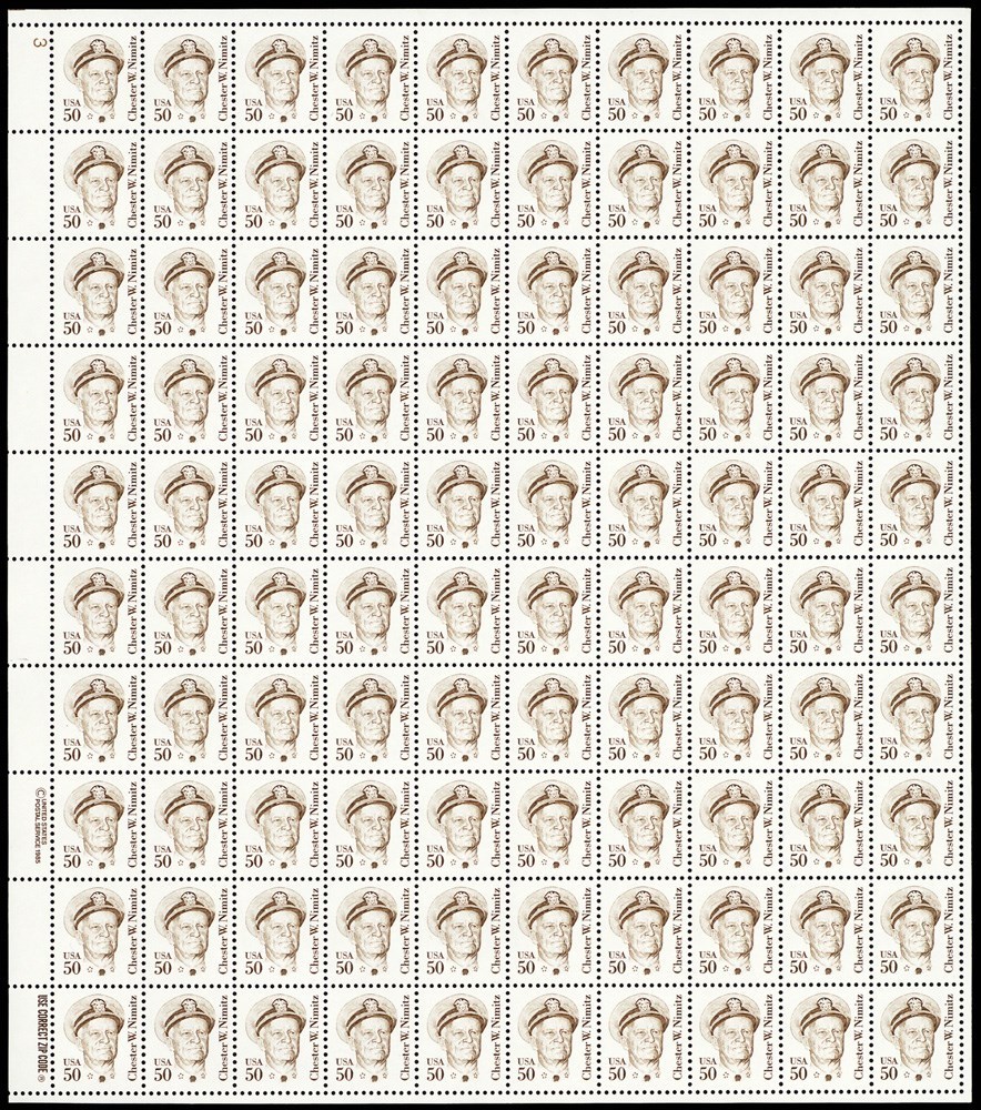 1869e, 50¢ Nimitz Perf 11.2 Shiny Gum Sheet of 100 Stamps CV $625. - Stuart Katz