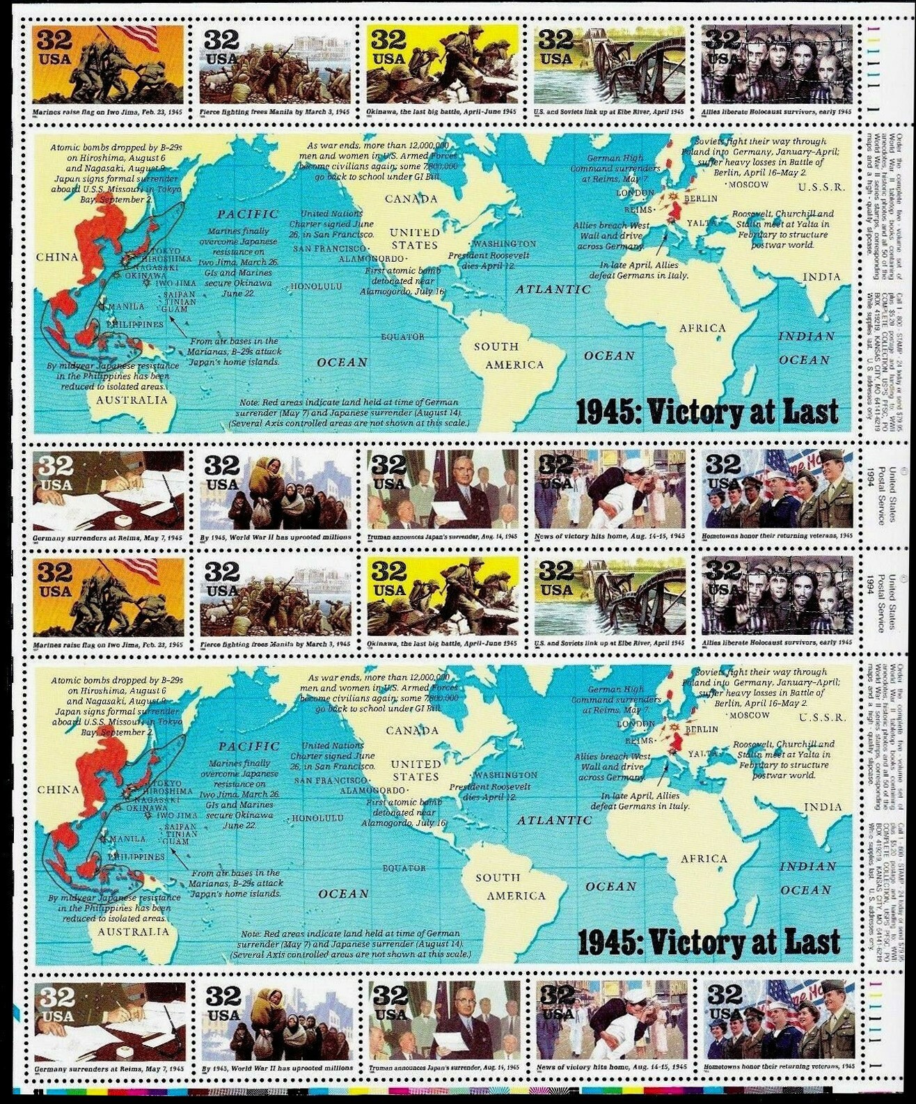 1945 WWII Victory At Last Sheet Sheet of Twenty 32 Cent Stamps Scott 2981