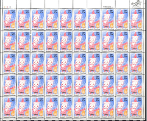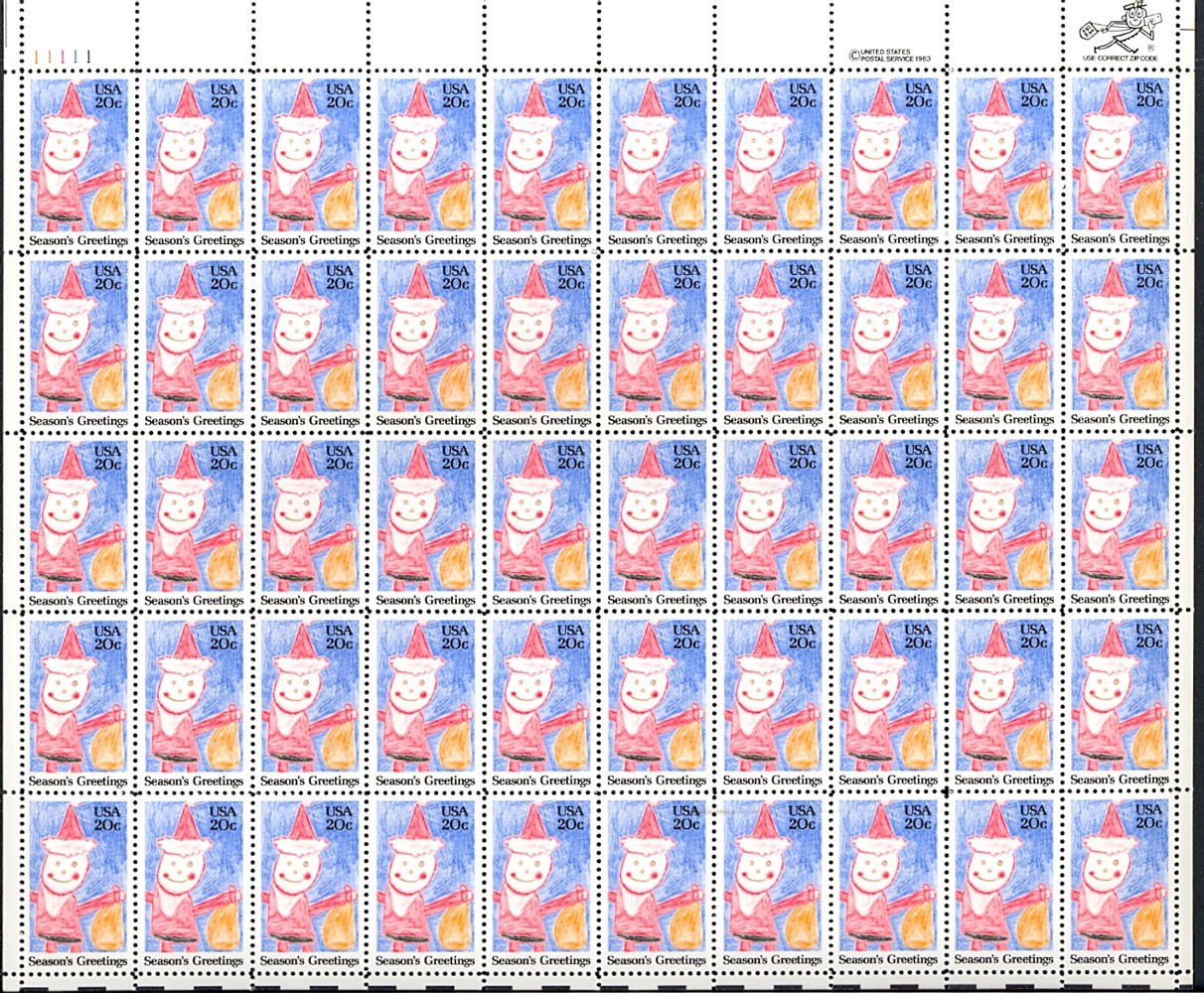 1984 Christmas Santa Claus Sheet of Fifty 20 Cent Postage Stamps Scott 2108