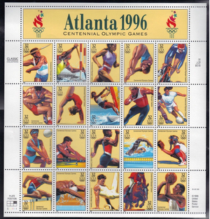 1996 Atlanta Summer Olympics Games Sheet of Twenty 32 Cent Stamps Scott 3068