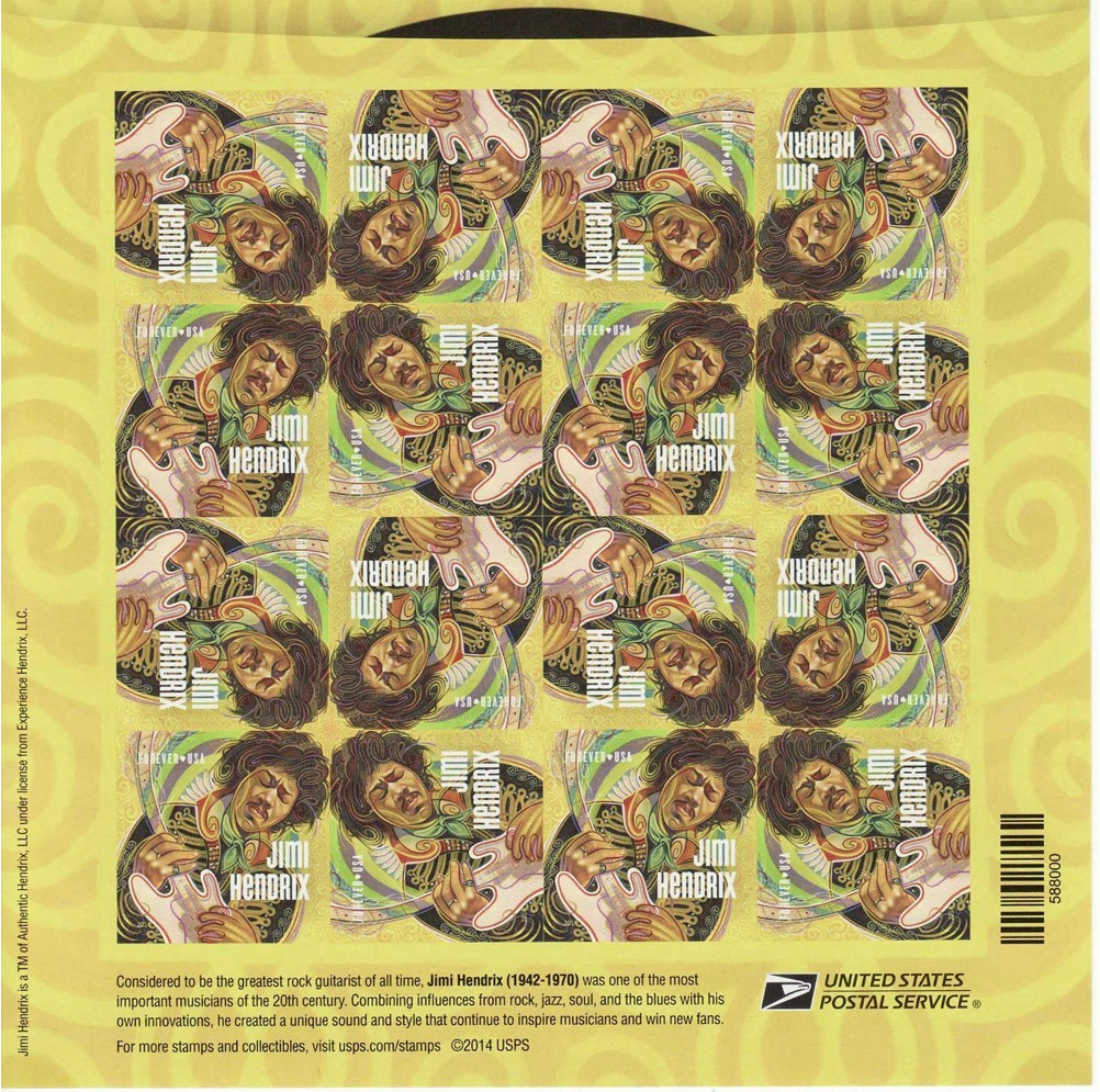 2014 Jimi Hendrix Sheet of 16 Current Rate Postage Stamps Scott 4880