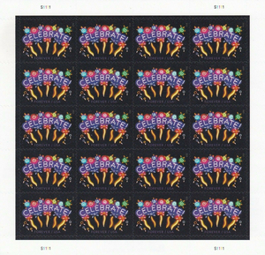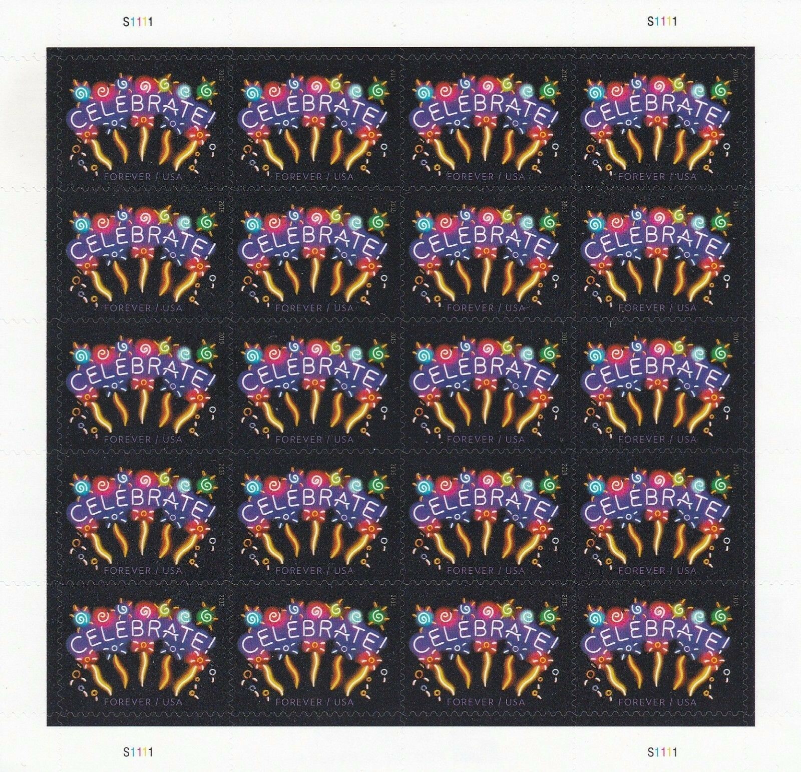2015 Neon Celebrate Sheet of 20 Current Rate Postage Stamps Scott 5019