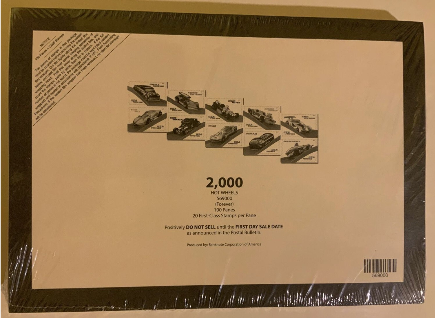 2018 Hot Wheels Sheet of 20 Full Pad of 100 Sheets (2000 Stamps) Scott 5330a