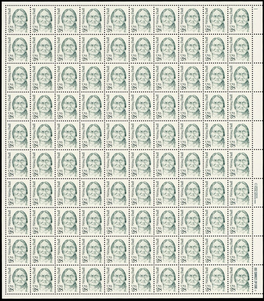 2183, 28¢ Sitting Bull Complete Pane of 100 Stamps CV $120.00 - Stuart Katz