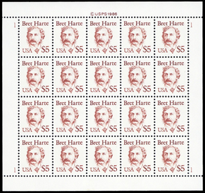 2196, Mint VF NH $5 Bret Harte Sheet of 20 Stamps - Stuart Katz
