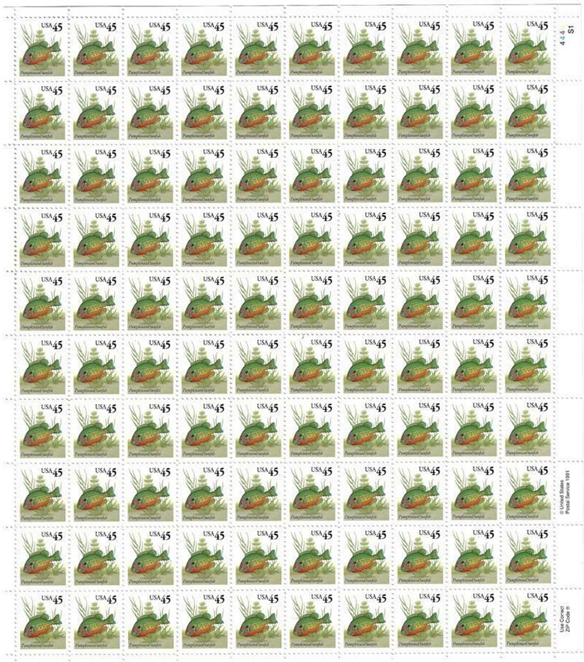 2481, MNH Pumpkinseed Sunfish Complete Sheet of 45¢ Stamps CV $130 Stuart Katz