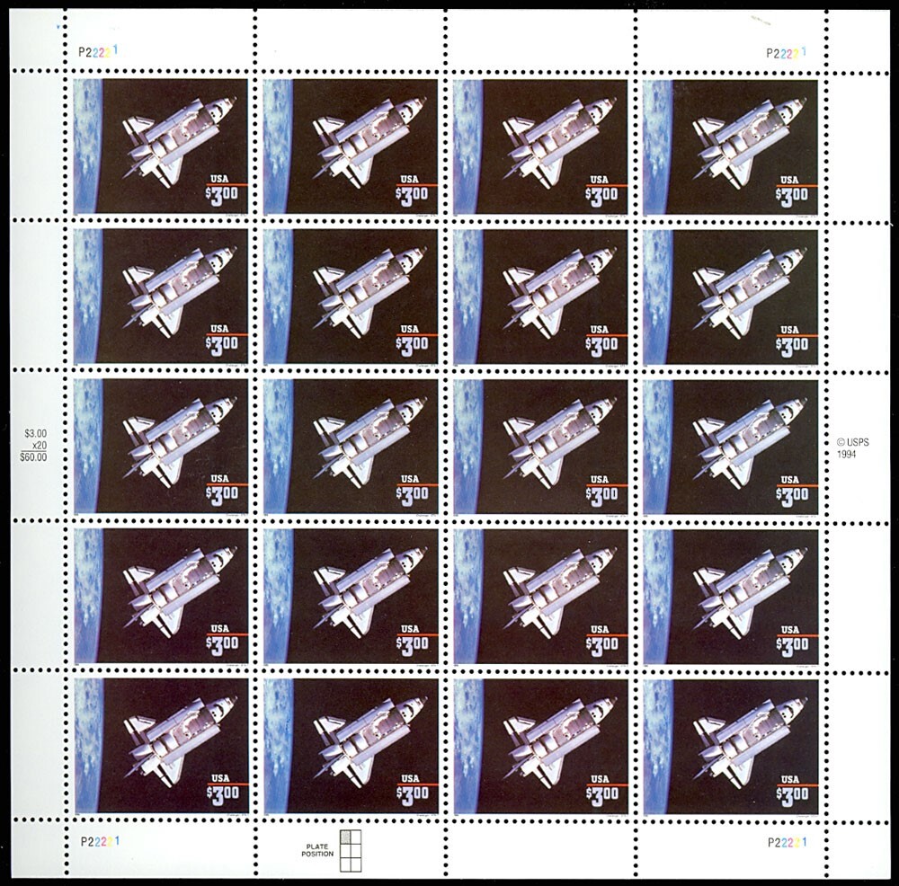 2544, $3.00 1995 Priority Mail Full Sheet of 20 Stamps - Stuart Katz
