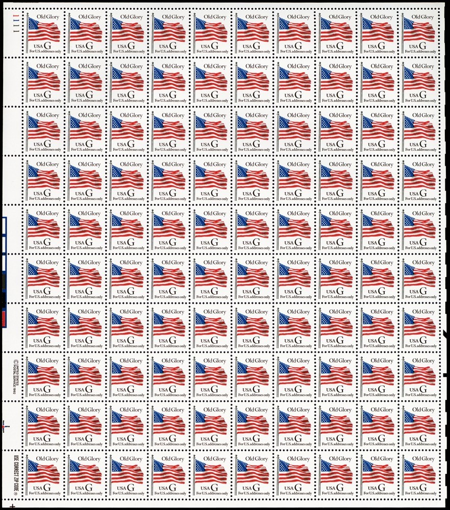 2882, Red "G" 32¢ Complete Sheet of 100 Stamps Brookman $95.00 - Stuart Katz