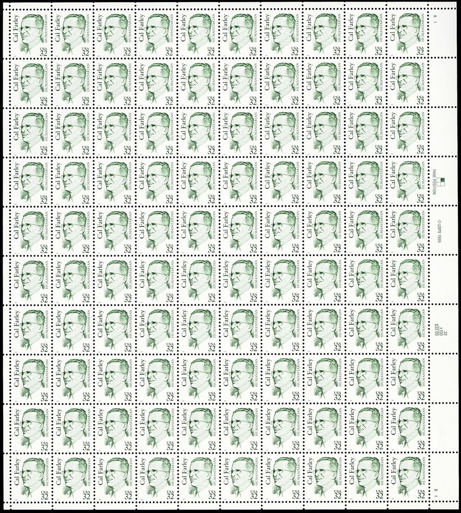 2934, 32¢ Cal Farley Sheet of 100 Stamps CV $105.00 Stuart Katz