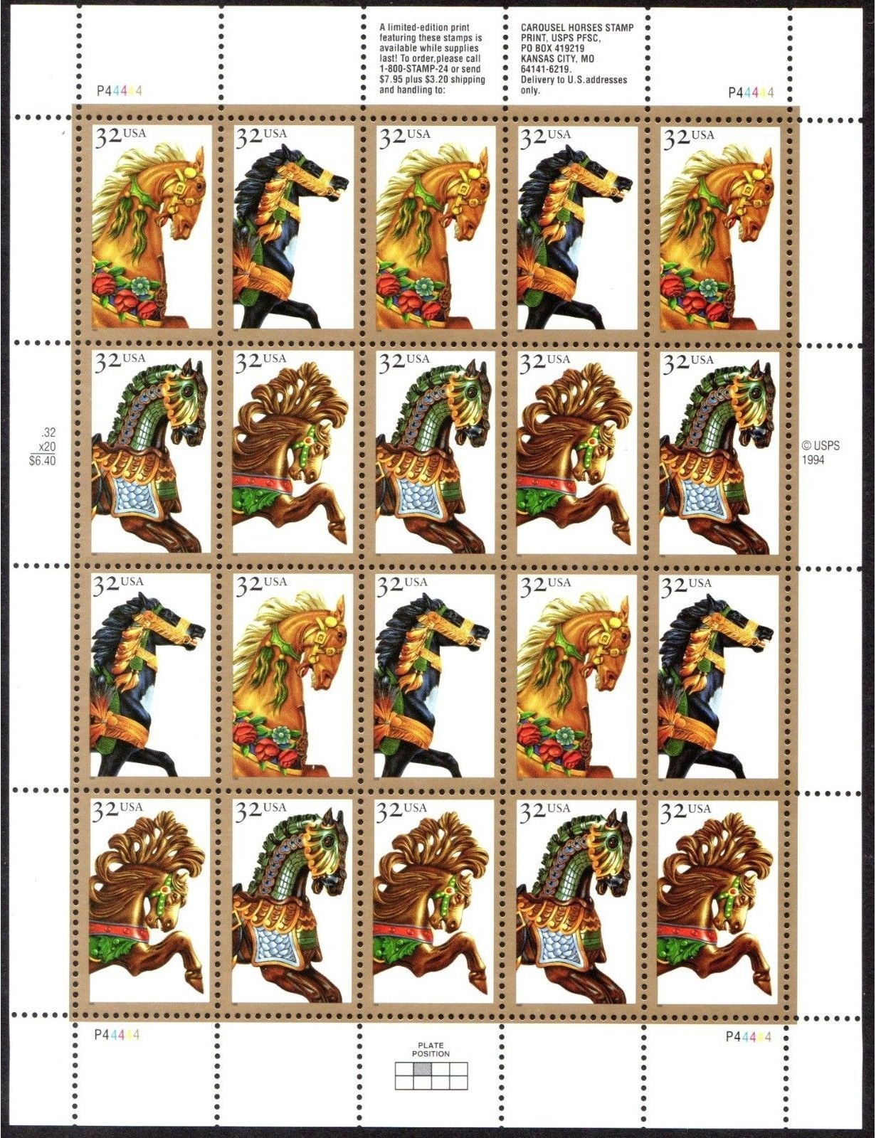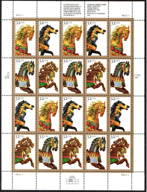 2979, 32¢ Carousel Horses Complete Sheet of 20 Stamps - Stuart Katz