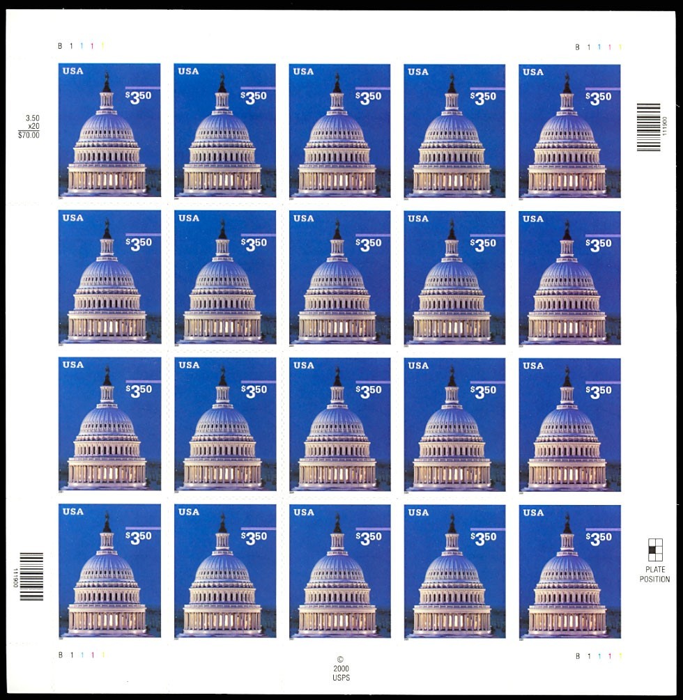 3472, $3.50 2001 Priority Mail Full Sheet of 20 Stamps CV $205.00 - Stuart Katz
