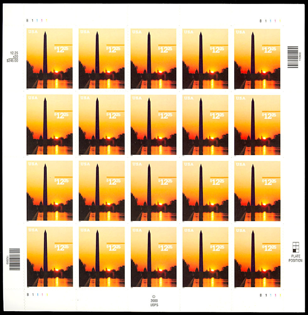 3473, $12.25 2001 Express Mail Full Sheet of 20 Stamps CV $685.00 - Stuart Katz