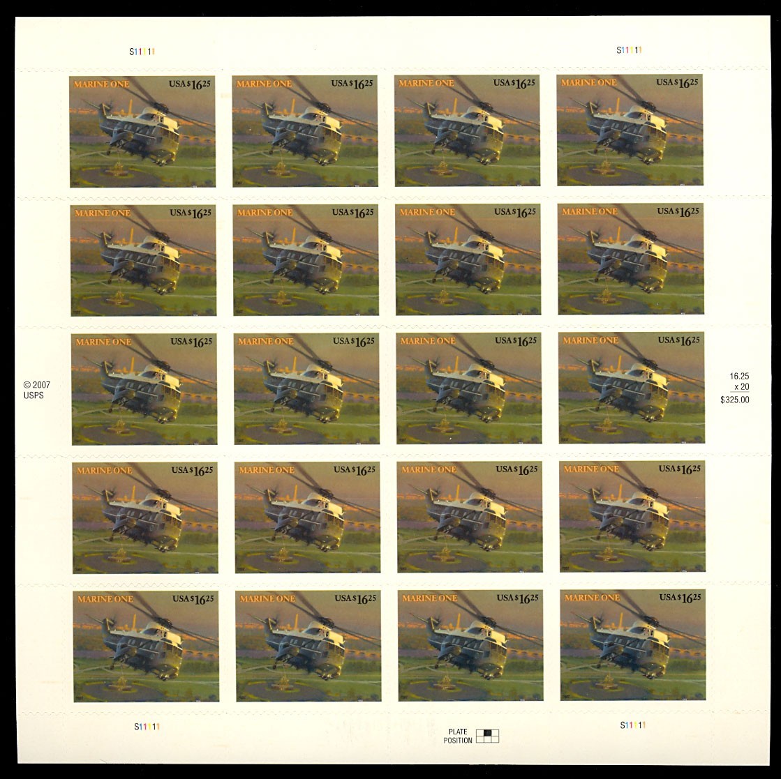 4145, $16.25 VF Express Mail Sheet of Twenty Stamps Marine One - Stuart Katz