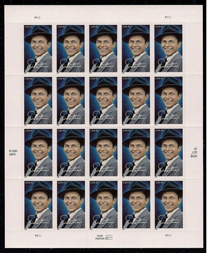 4265, 42¢ Frank Sinatra Complete Pane of 20 Stamps