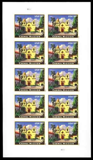 4650, $18.95 Carmel Mission Express Mail Sheet of 10 Stamps - Stuart Katz