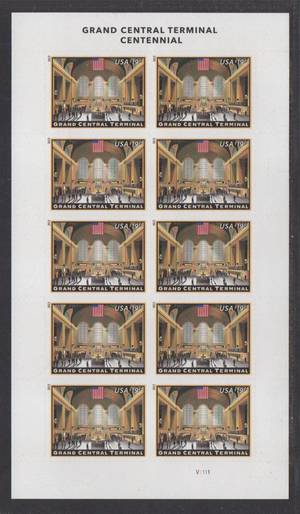 4739, Mint $19.95 Grand Central Station Pane of 10 Stamps - Stuart Katz